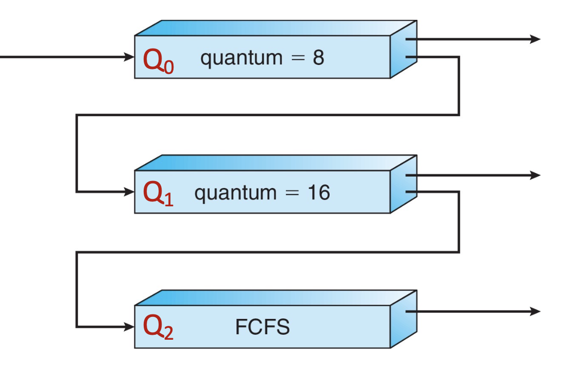 Q0은 8밀리초의 타임퀀텀을 가지는 라운드 로빈 스케줄링을 사용한다.