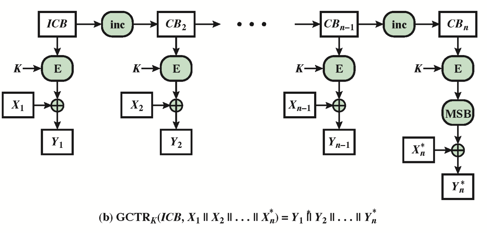 ICB는 초기 카운터 블록으로, 보통 nonce와 같은 유일한 값으로 설정된다.