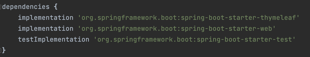 dependencies는 프로젝트에서 사용하는 외부 의존성(라이브러리)의 모음이다. 여기서 의존성을 추가하거나 제거할 수 있다.