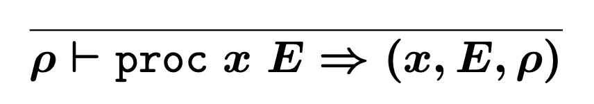 환경 p에서 proc x E는 매개변수 x, 본문 E, 현재 환경 p를 포함하는 클로저로 평가된다.