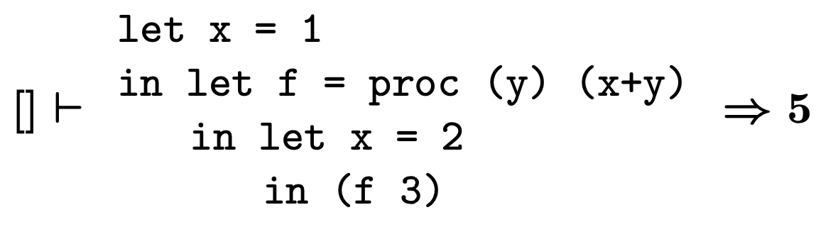 proc (x) (let y = 1 in x + y + z) : x, y는 바인딩된 변수지만, z는 자유 변수이다.