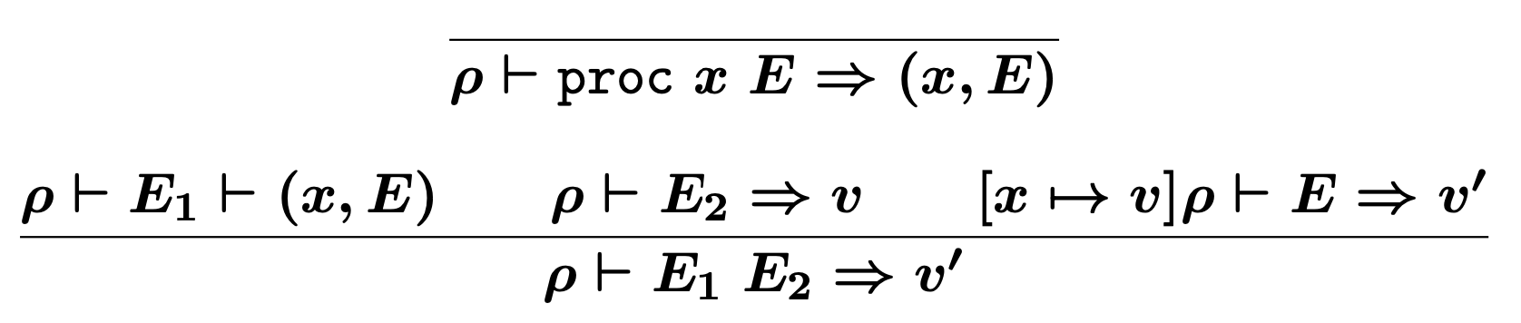 proc x E는 인자 x를 받아 E를 실행하는 함수를 정의한다.